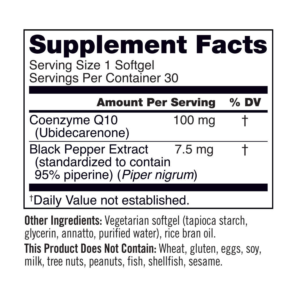 NatureWise CoQ10 + Black Pepper is enhanced with black pepper extract to increase absorption of CoQ10*