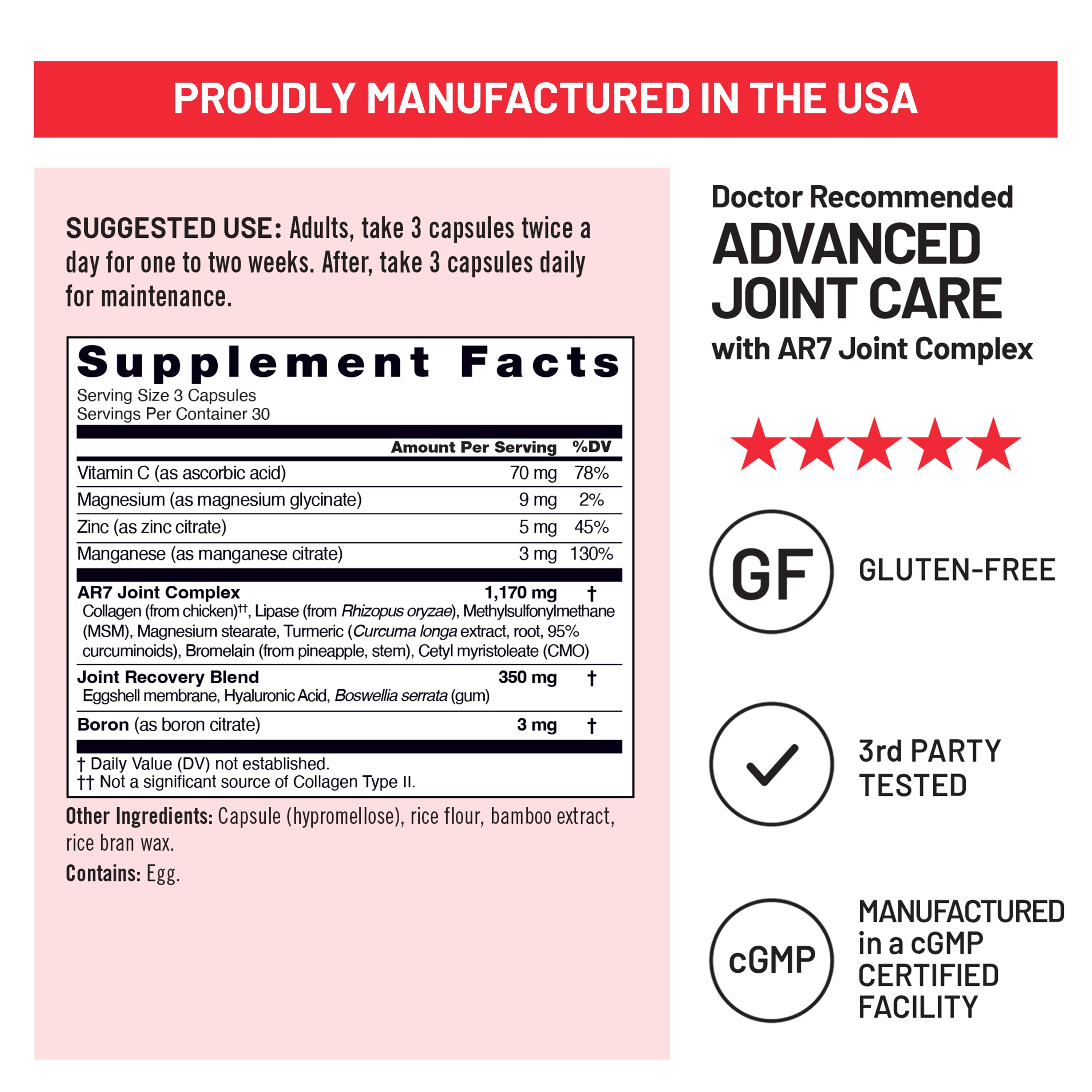 - Clinically tested AR7 Joint Complex ingredient