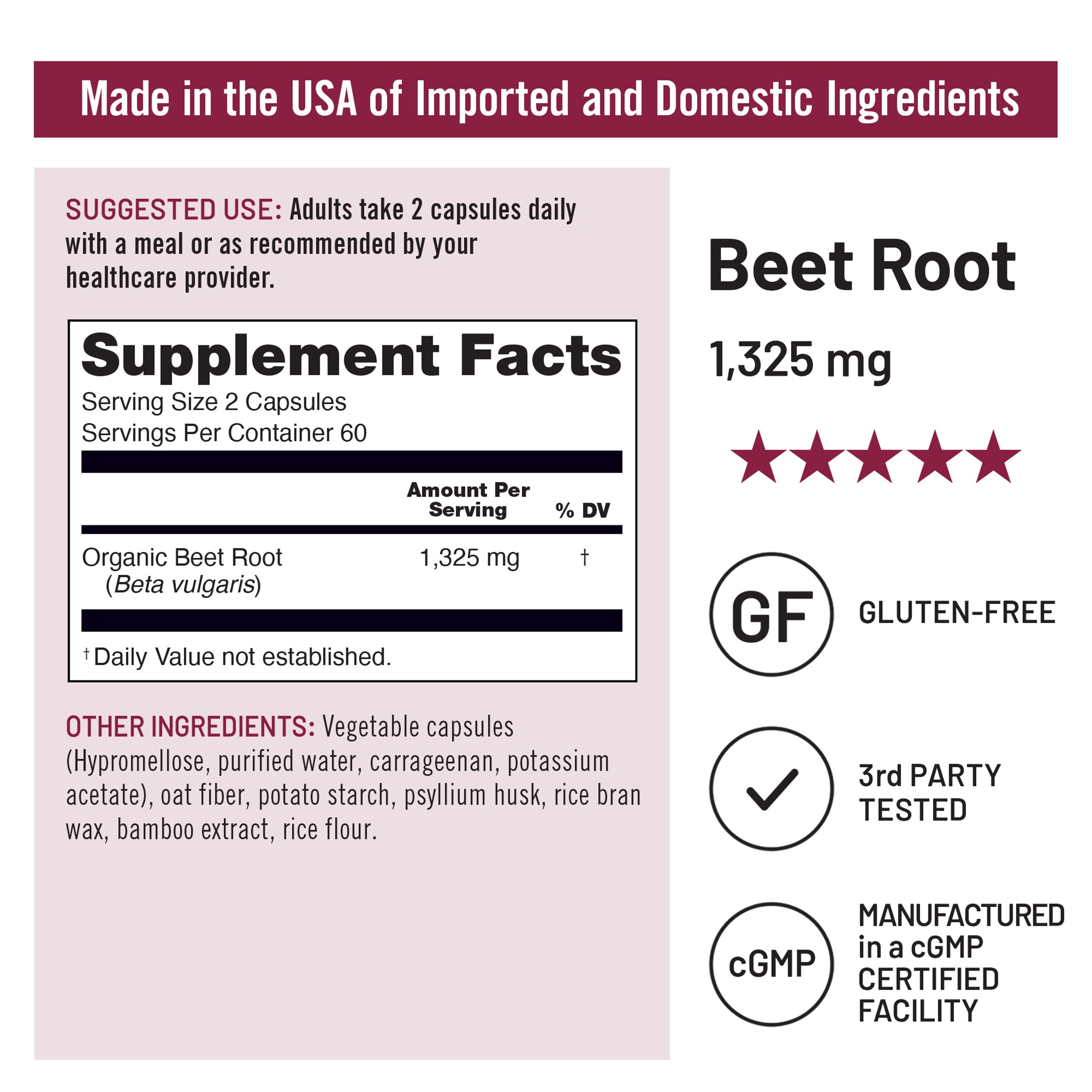 - 1325 mg organic beet root