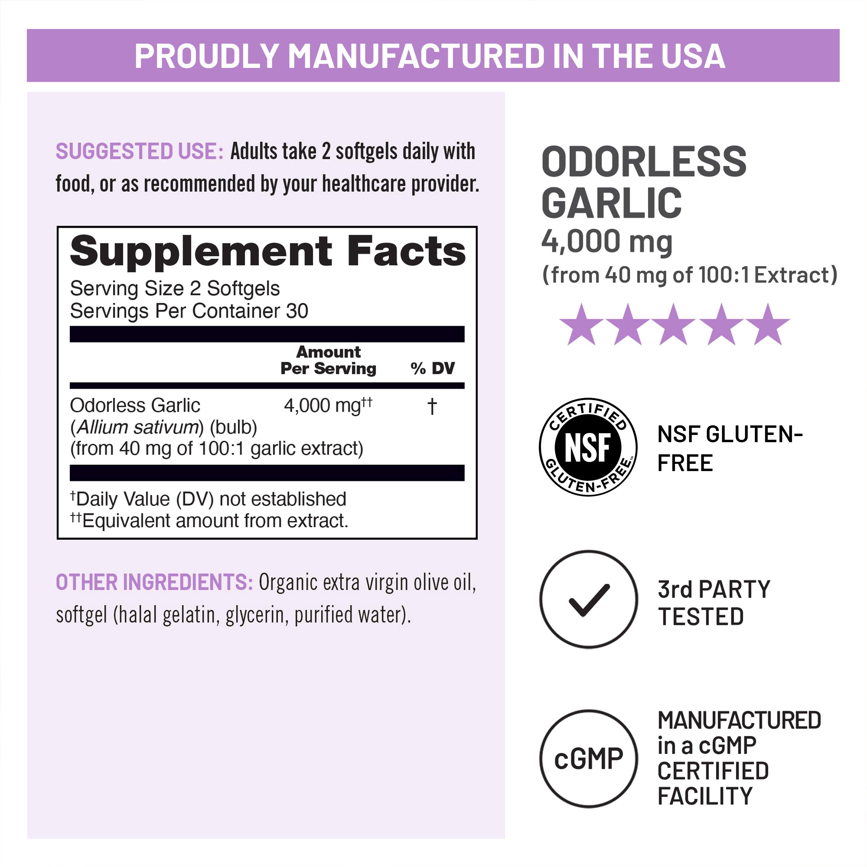 Support your daily heart health with two extra-strength odorless garlic softgels.*