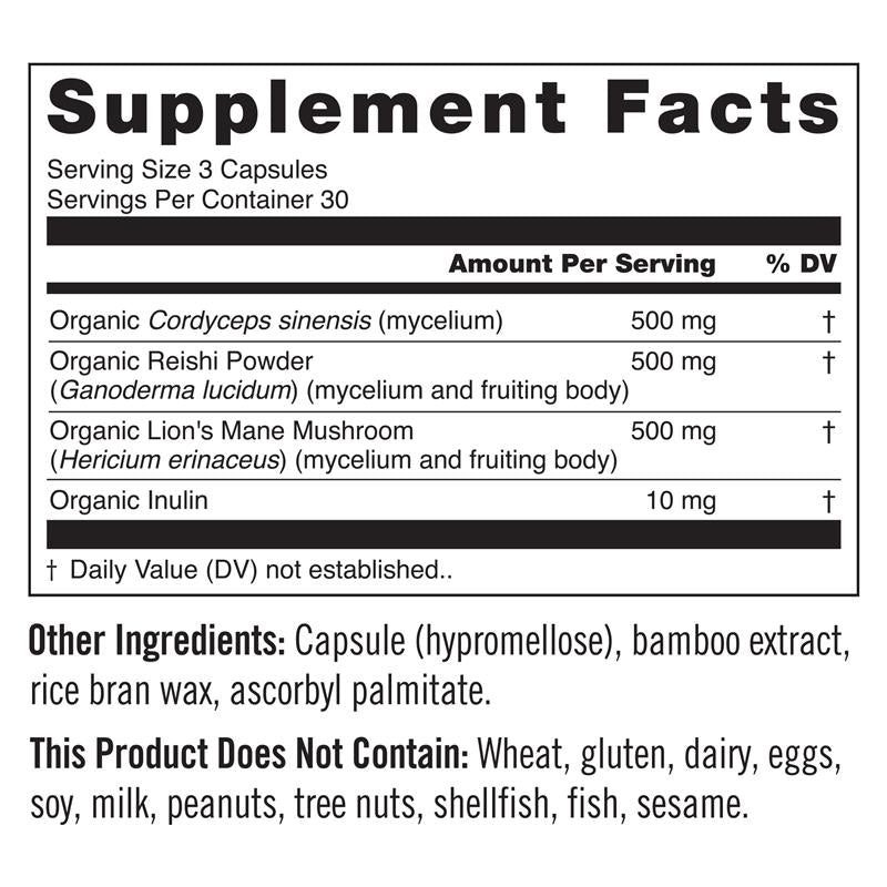Potent mushroom complex for synergistic energy, immune and cognitive support.*