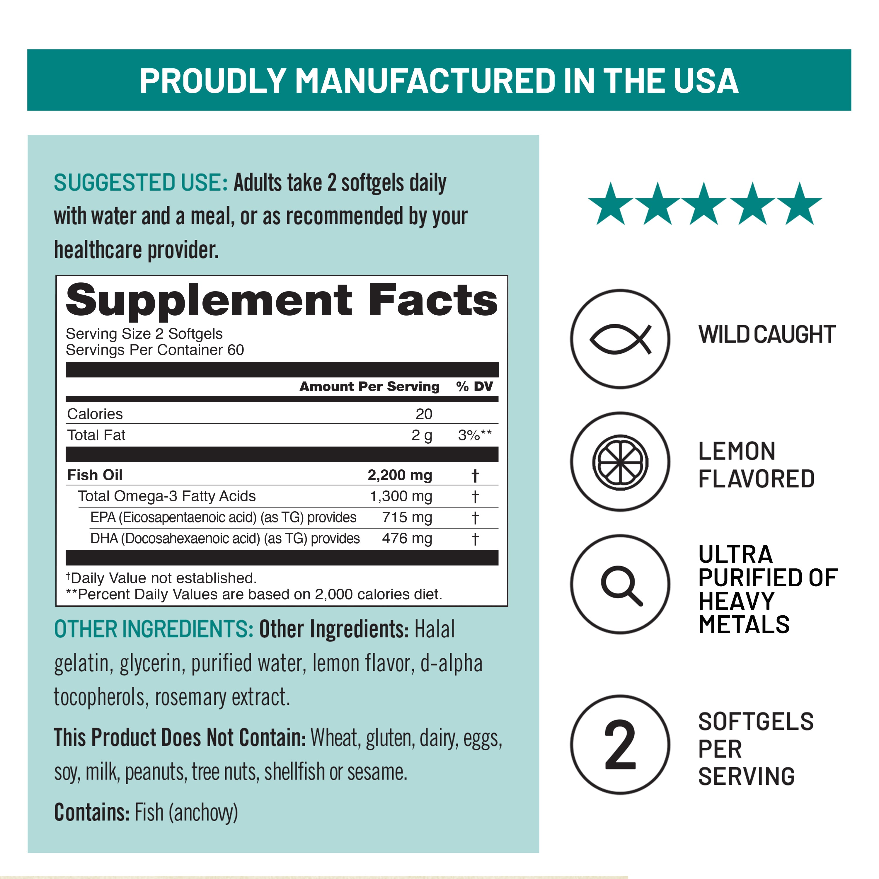 This omega-3 fish oil is in natural triglyceride form and ultra purified of heavy metals for your peace of mind.