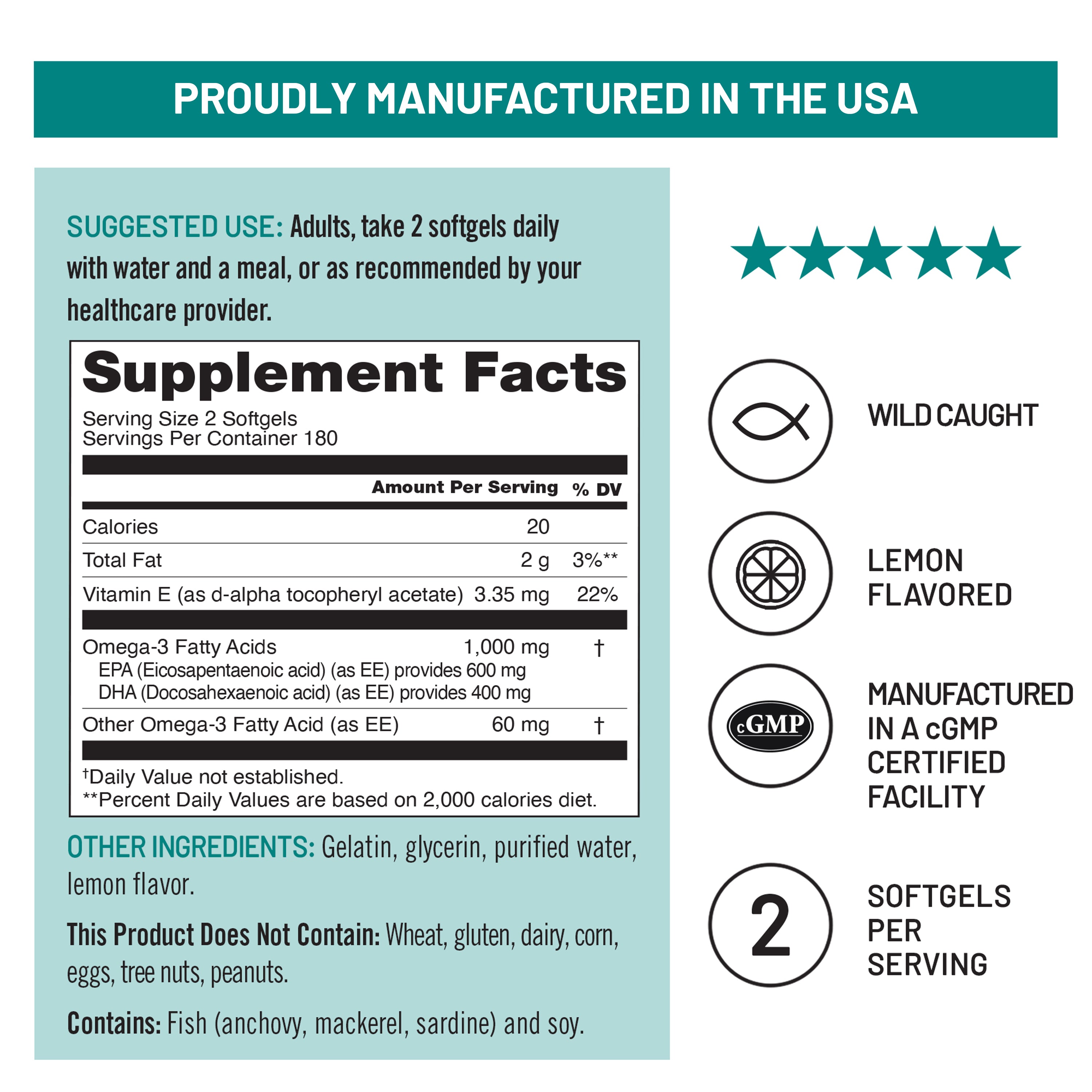 - 1000 mg Omega-3 per serving
