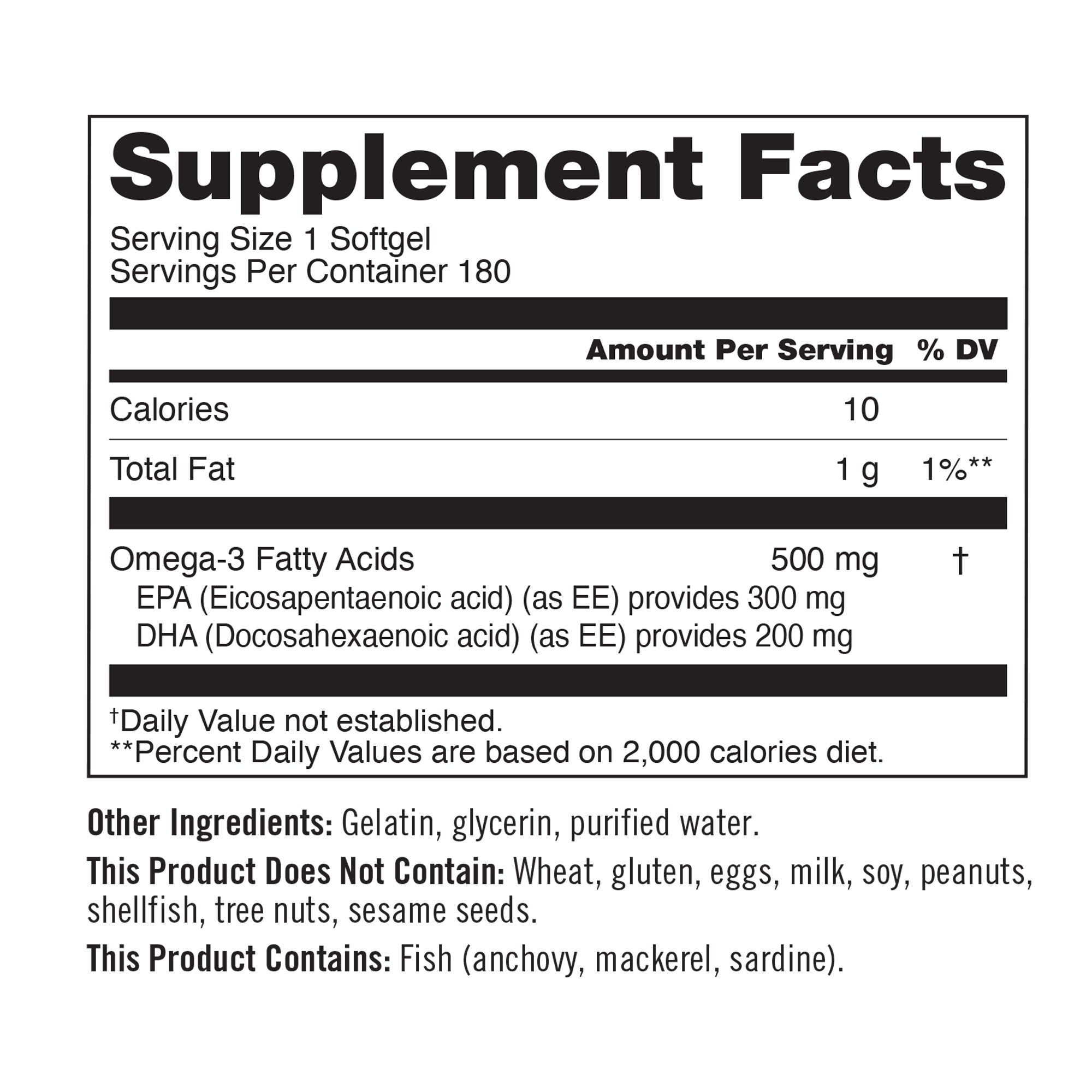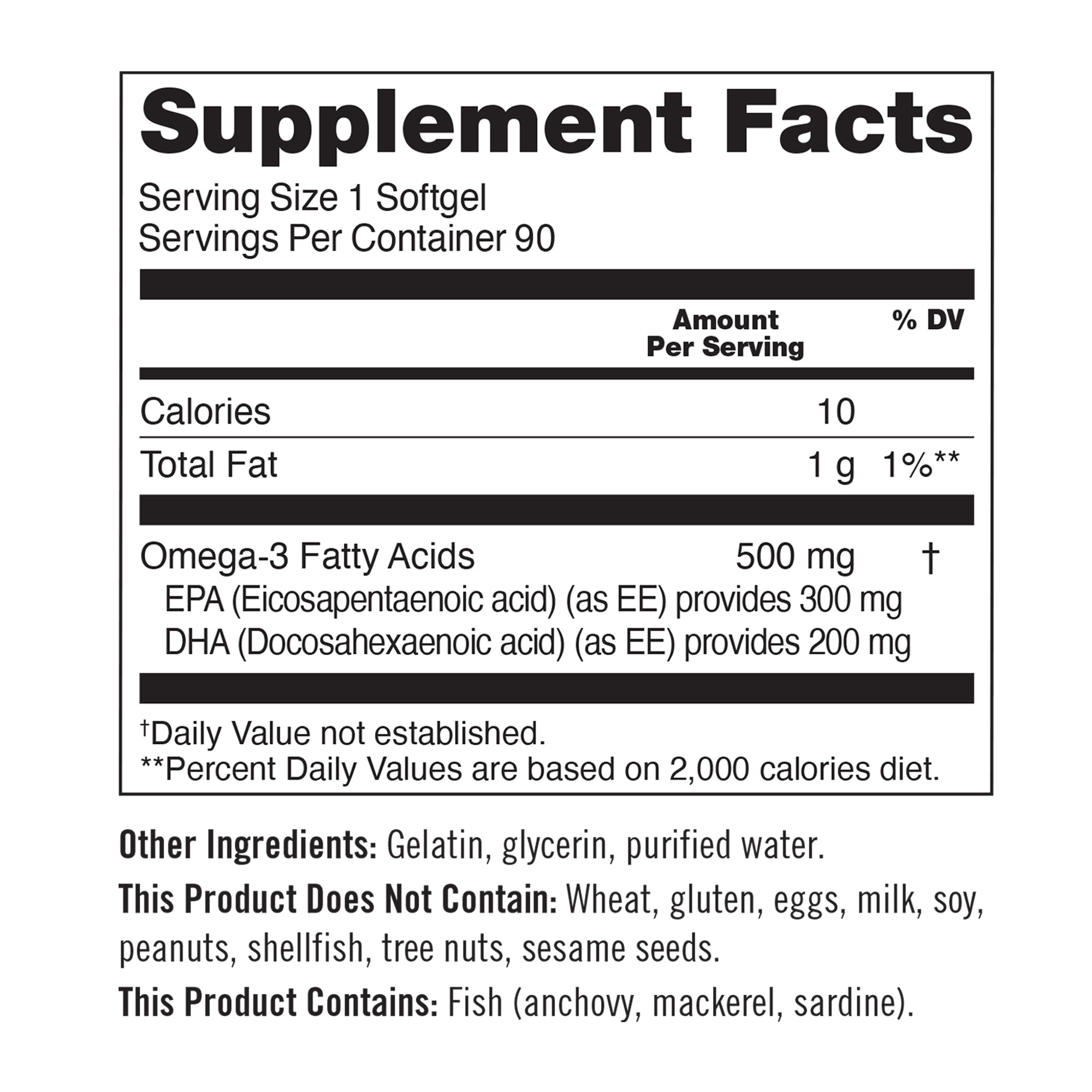 One softgel a day delivers 500 mg of omega-3 fatty acids to support your heart, brain, and joint health.*