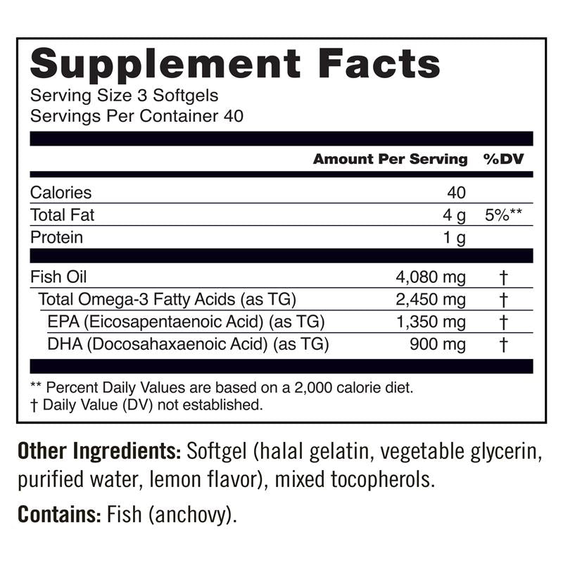 - 2450 mg Omega-3 in natural triglyceride form
