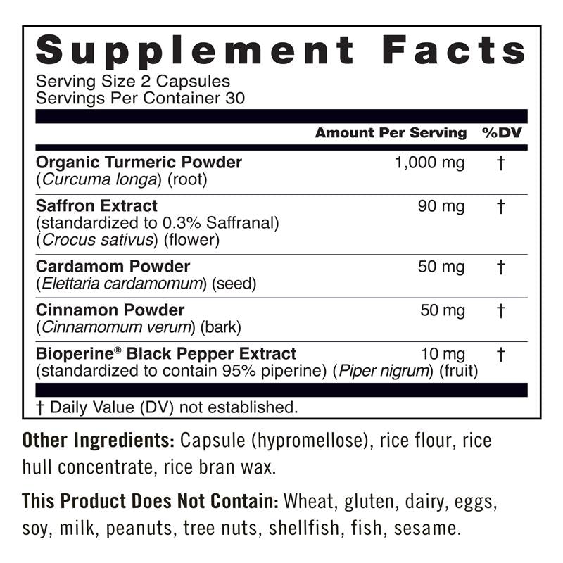 Turmeric, saffron, cinnamon & cardamom blend supporting mood, memory and antioxidant health with enhanced absorption.*