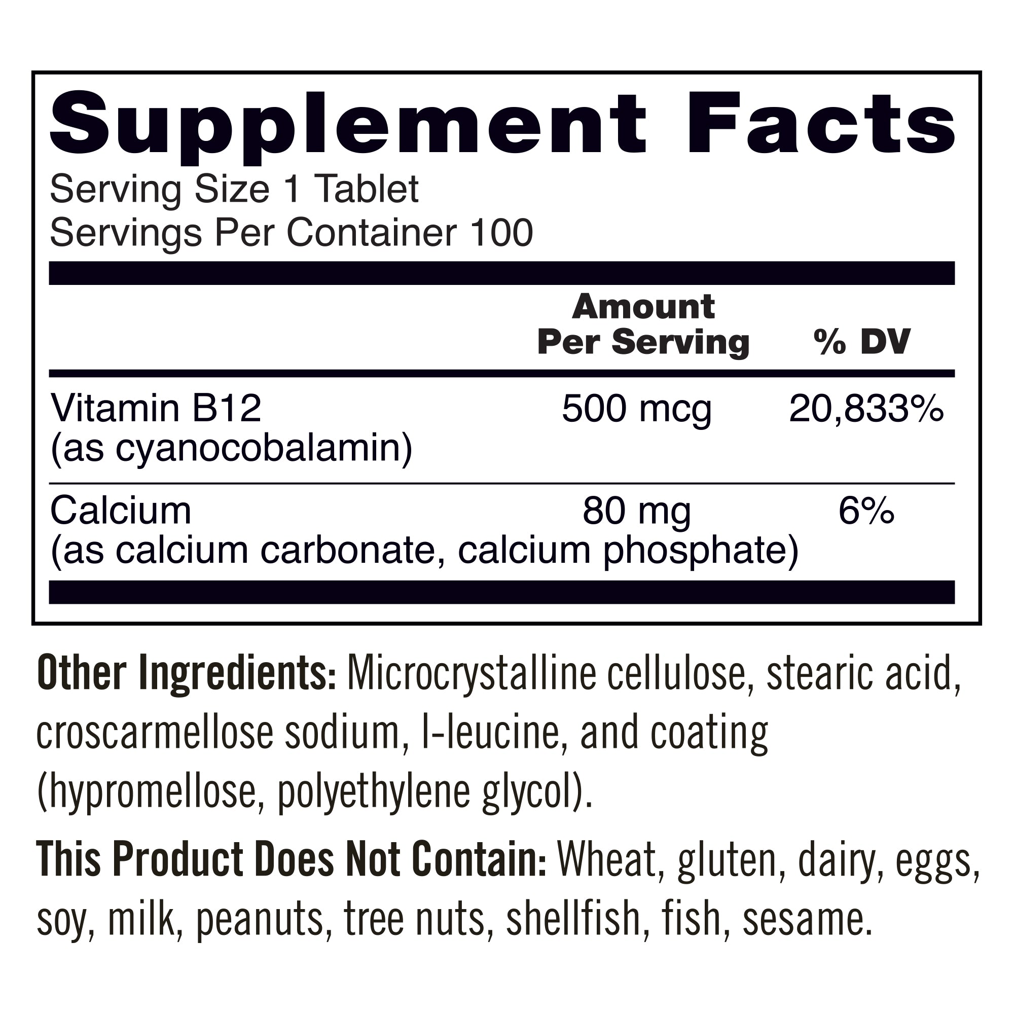 - 500 mcg Vitamin B12