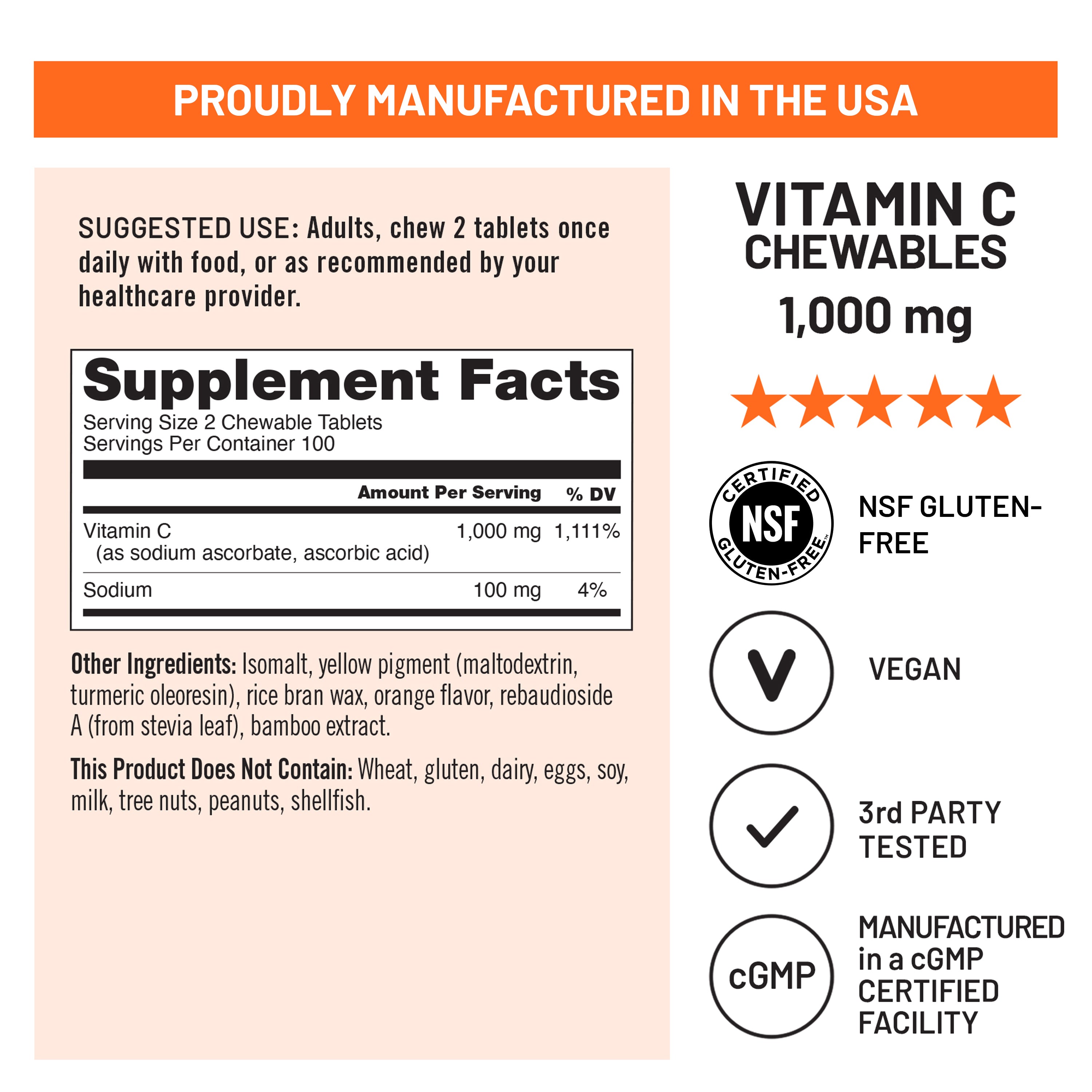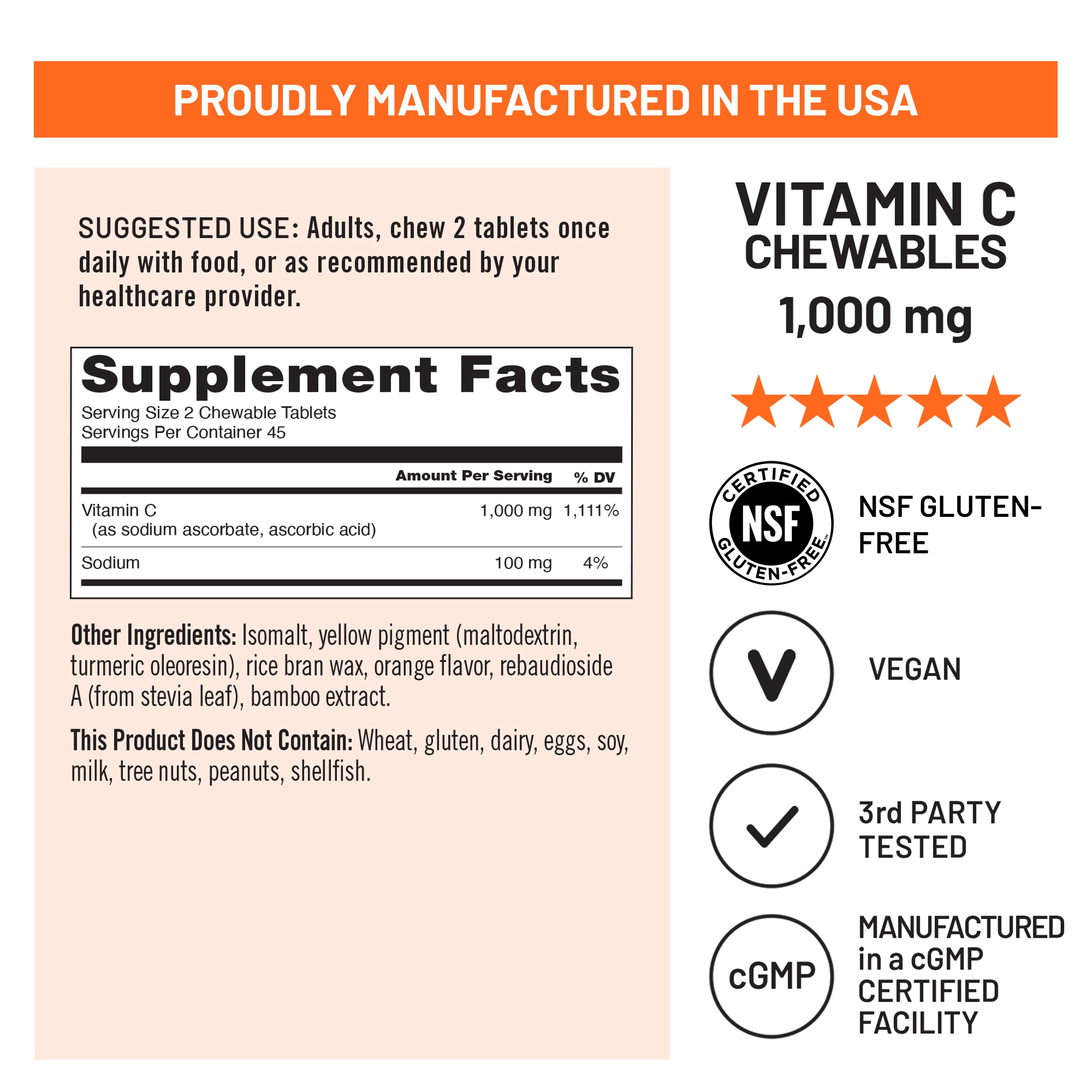 These tangy, orange-flavored chewable vitamin c tablets offer delicious support for your immune system on the go.*