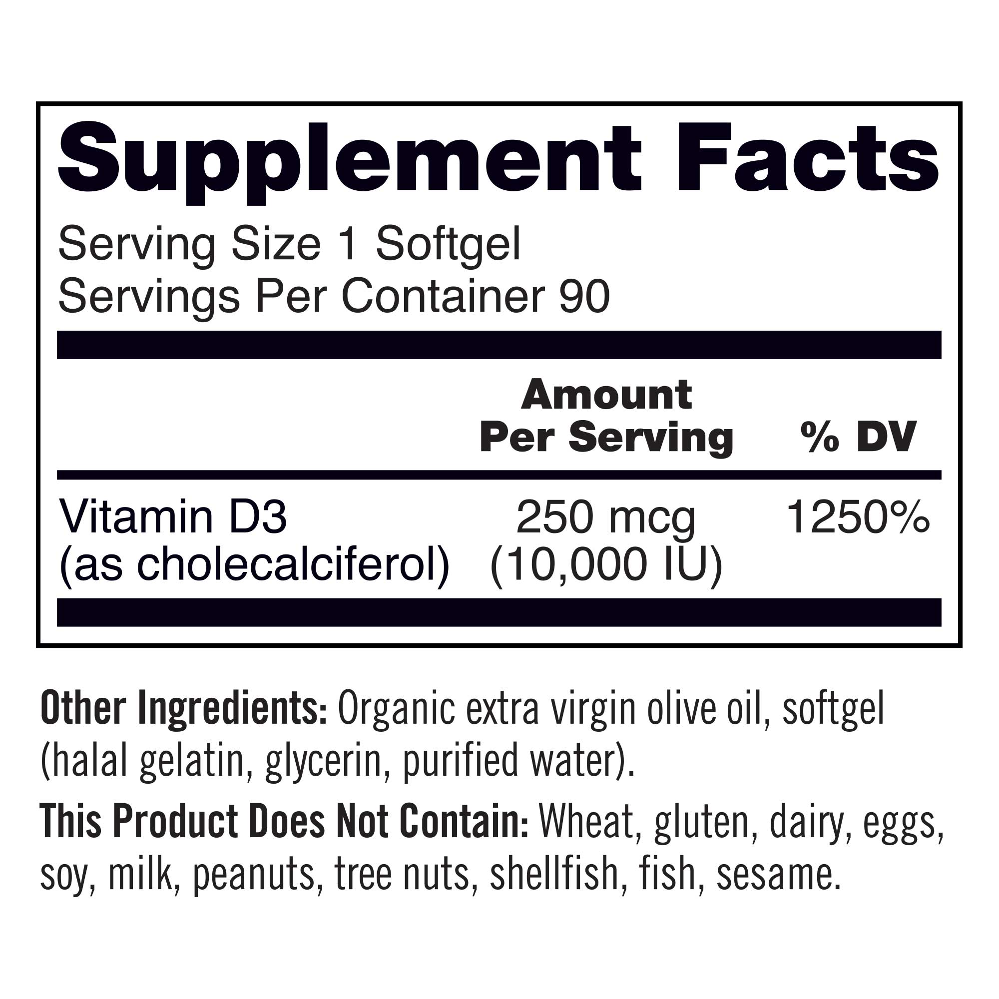 A vitamin without all those other ingredients. I feel better after taking this D3 vitamin. I will be a customer for a long time. Thank you!